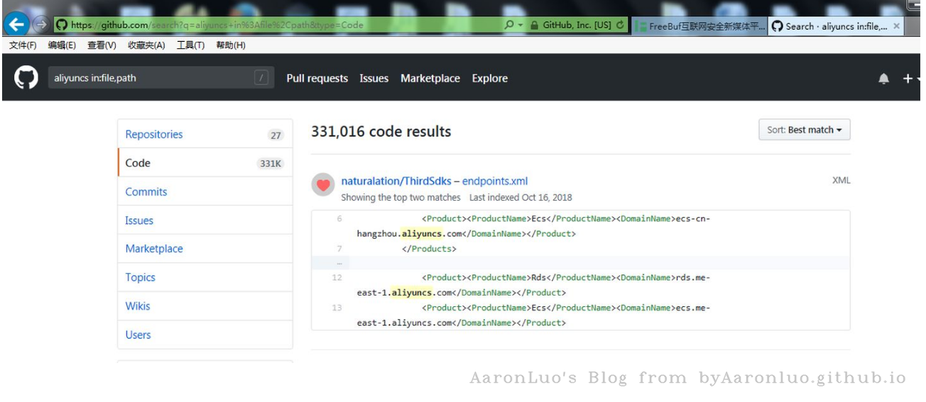 github作为全球的开发使用网站、有些开发会在上面发布公司测试的代码、或者一些测试,利用github搜索关键词,或者结合特定语法来使用,效果更佳