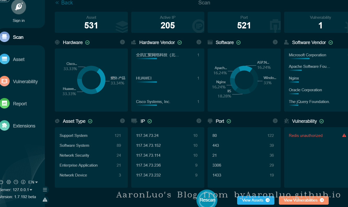 Goby的优势是方便直观,且支持POC进行漏洞扫描,可自定义POC