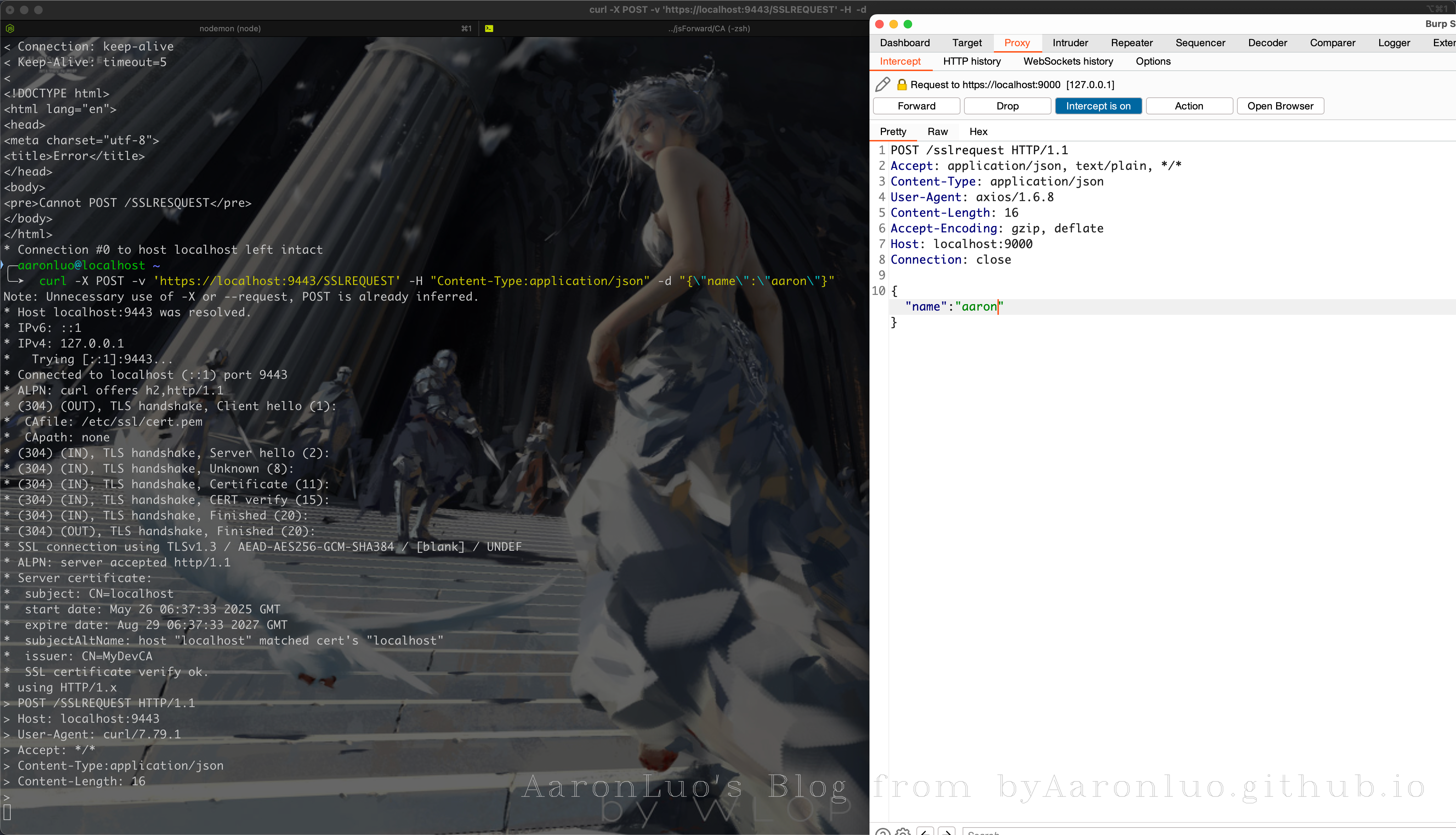 启动程序之后,可以使用curl命令尝试是否可以正常到burp上来
