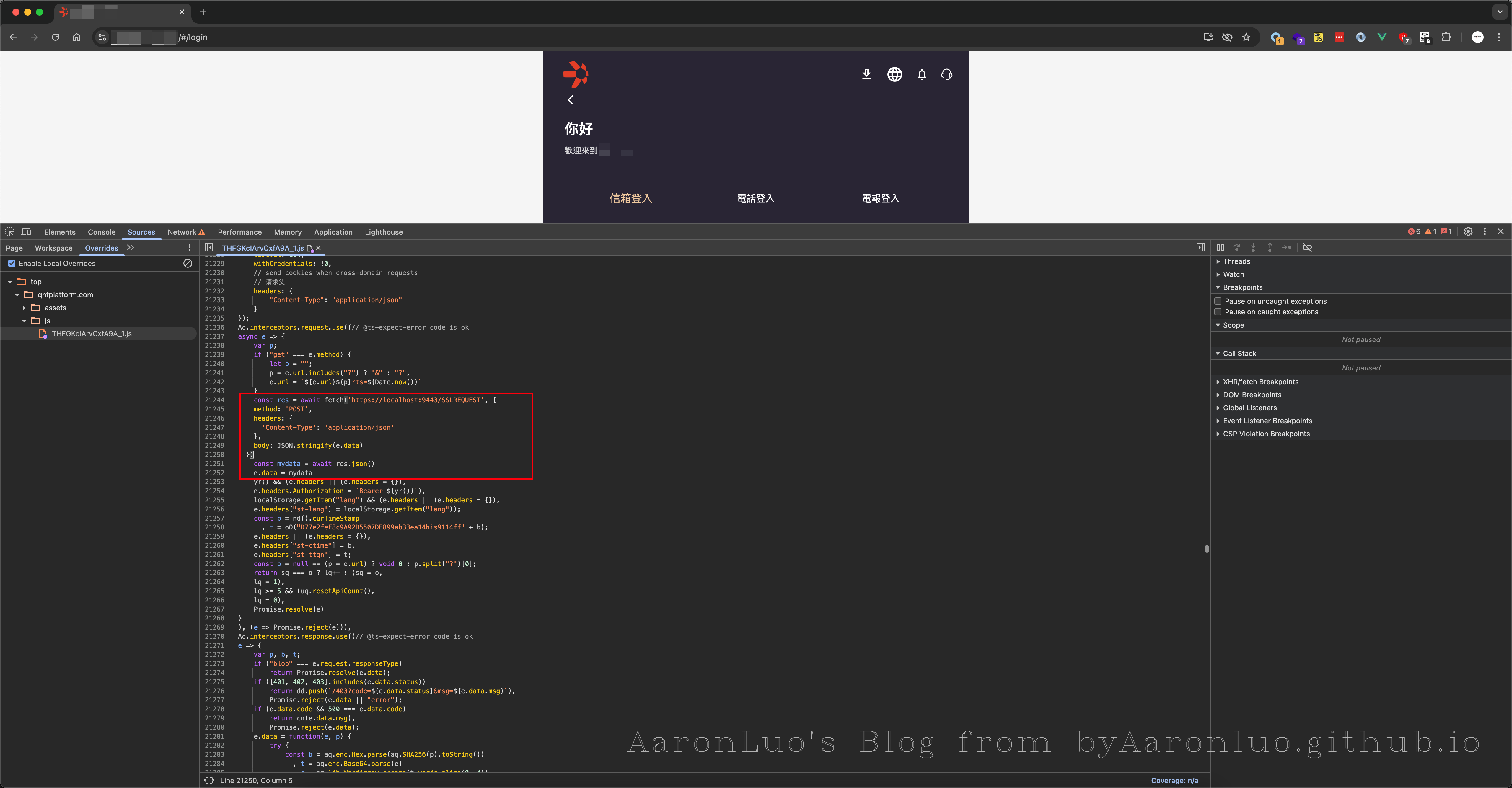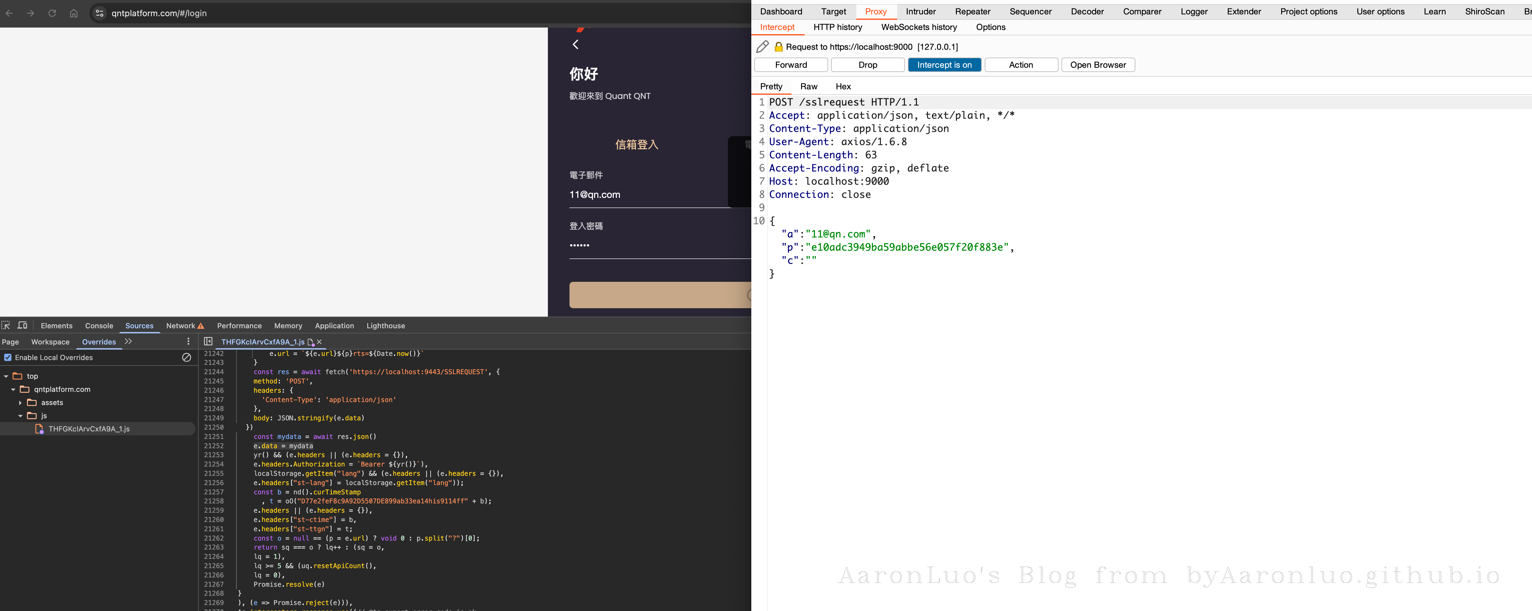 测试通过之后,在需要加解密之前的地方Overrieds当前的js(以下示例是在request的拦截器,response的拦截器)