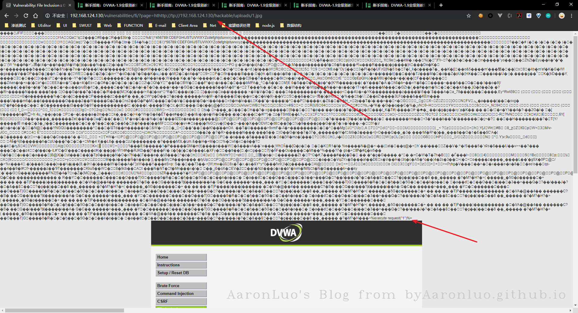 可以上传图片马,然后使用文件包含漏洞去访问图片,文件包含访问图片会将图片按PHP解析