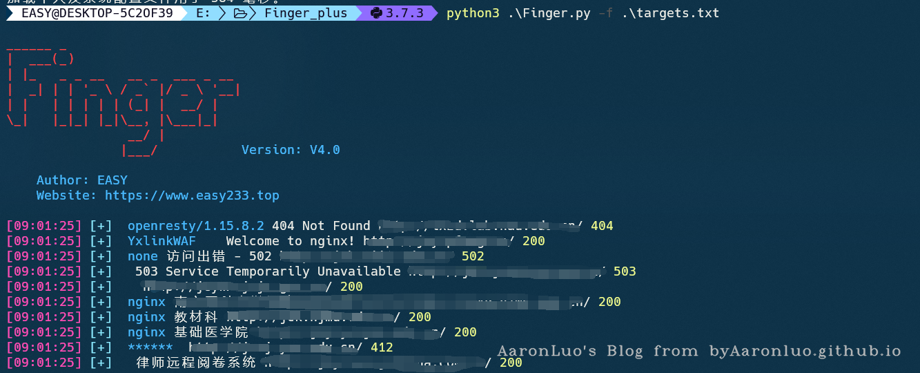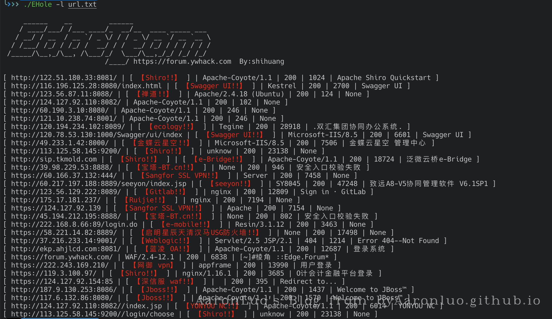 使用方法就是,直接加IP地址段或者域名列表 EHole -l url.txt