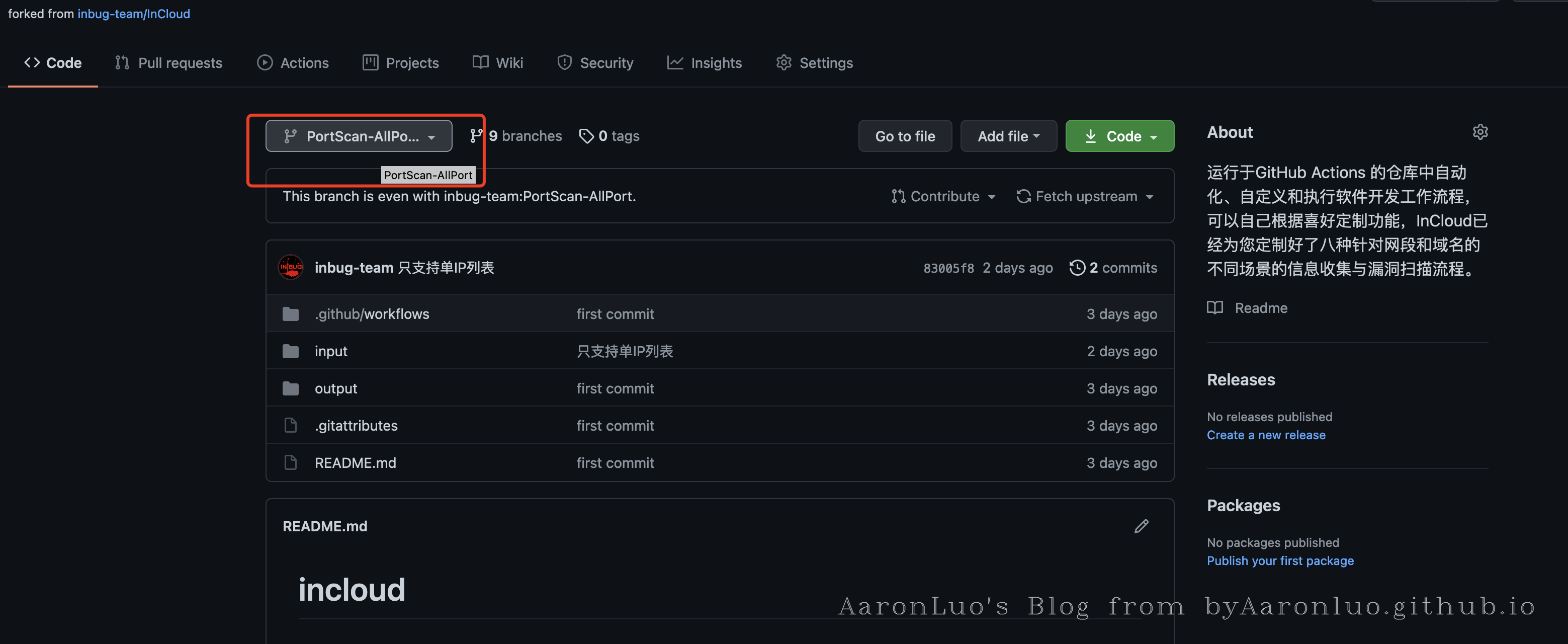 这里以端口扫描为例 1、将项目fork到自己的github,选择端口扫描的分支。