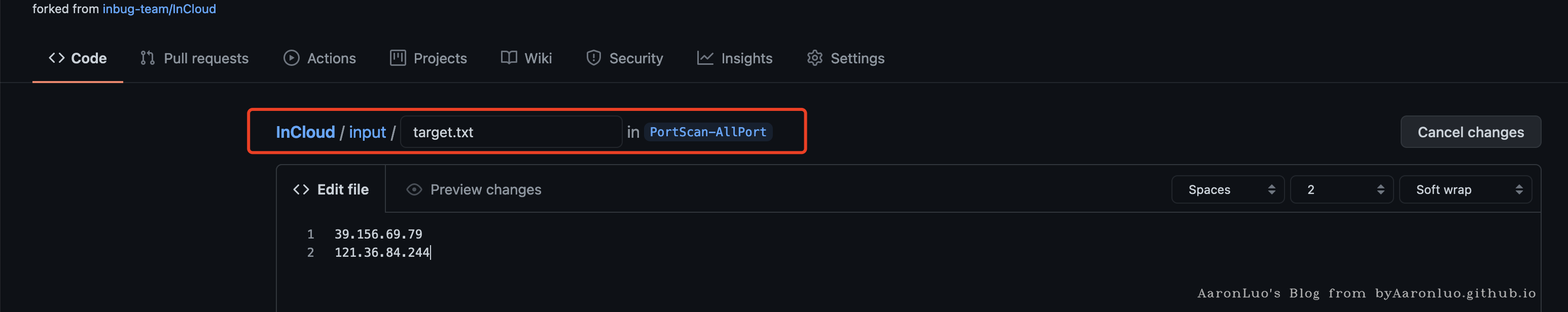 2、修改流程文件(.github/workflows/incloud.yaml)里的 git config --local user.email 与 git config --global user.name 改成自己的邮箱与自己的ID(用于报告输出,可忽略)。 3、修改input目录的扫描目标
