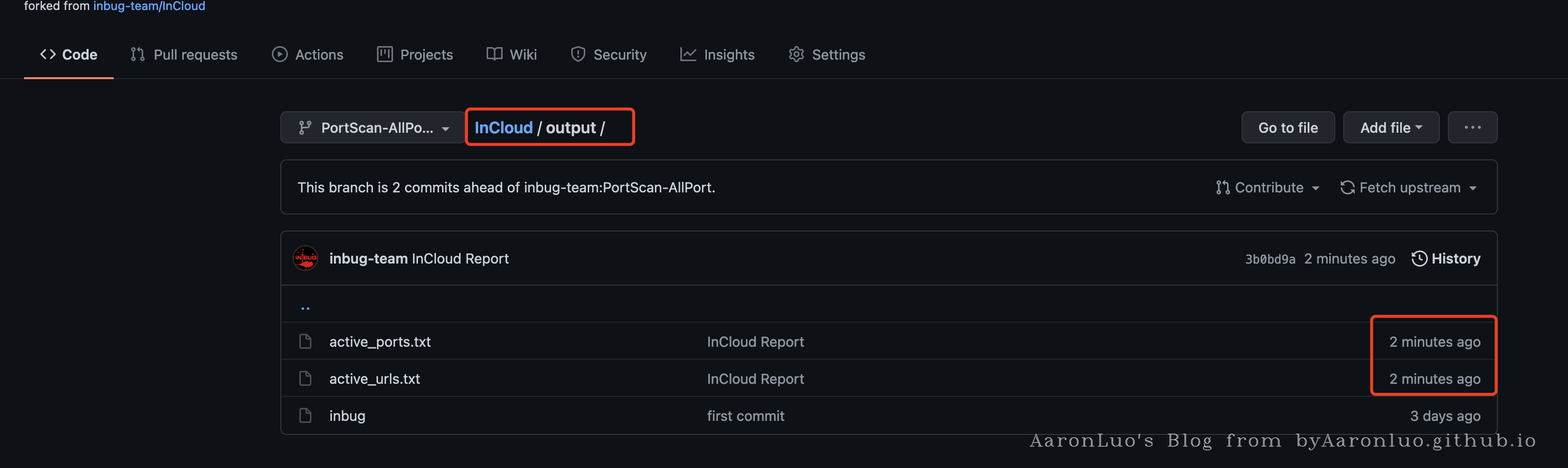 7、GitHub提供六小时的容器使用时长,扫描结束后,扫描结果会自动上传到自己fork的output文件夹下。