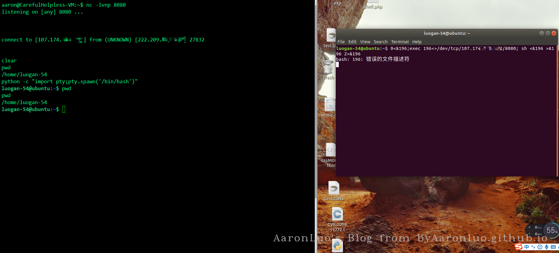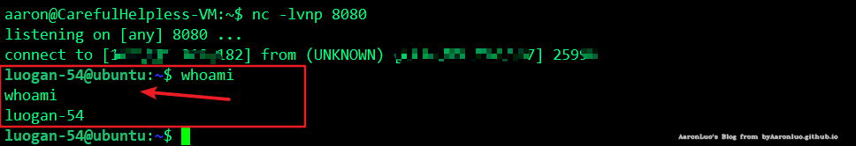 /8080:与目标主机ip/8080端口建立一个TCP连接; - 0>&1:将标准输入与标准输出相结合,重定向到前面标准输出内容