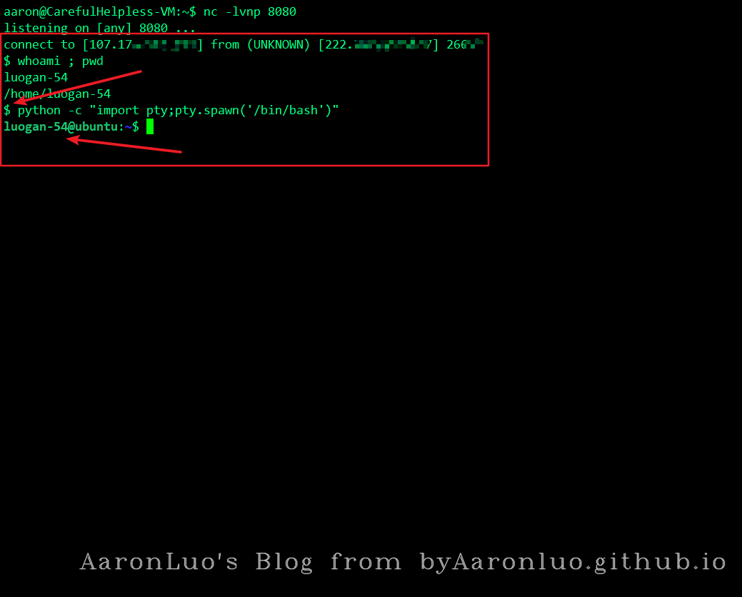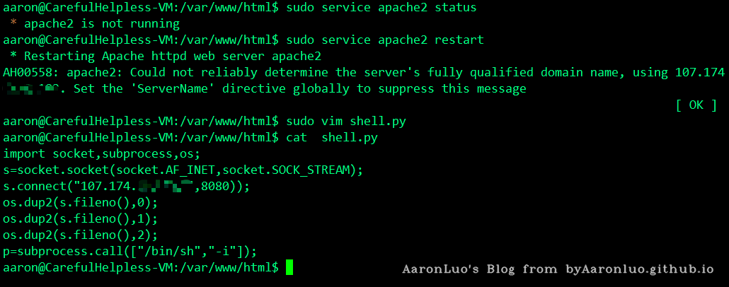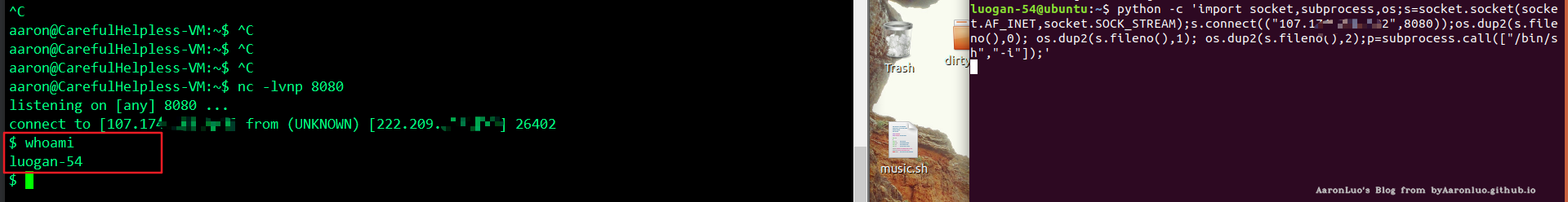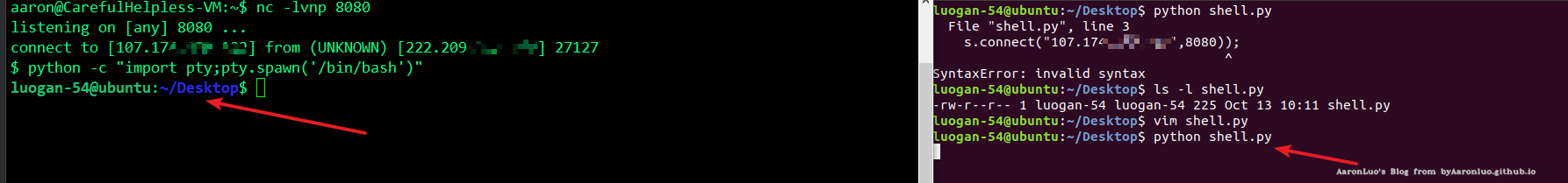 当拿到webshell权限之后,可以上传此脚本,只要目标服务器有python环境,即可执行此脚本,并在攻击机上反弹回shell