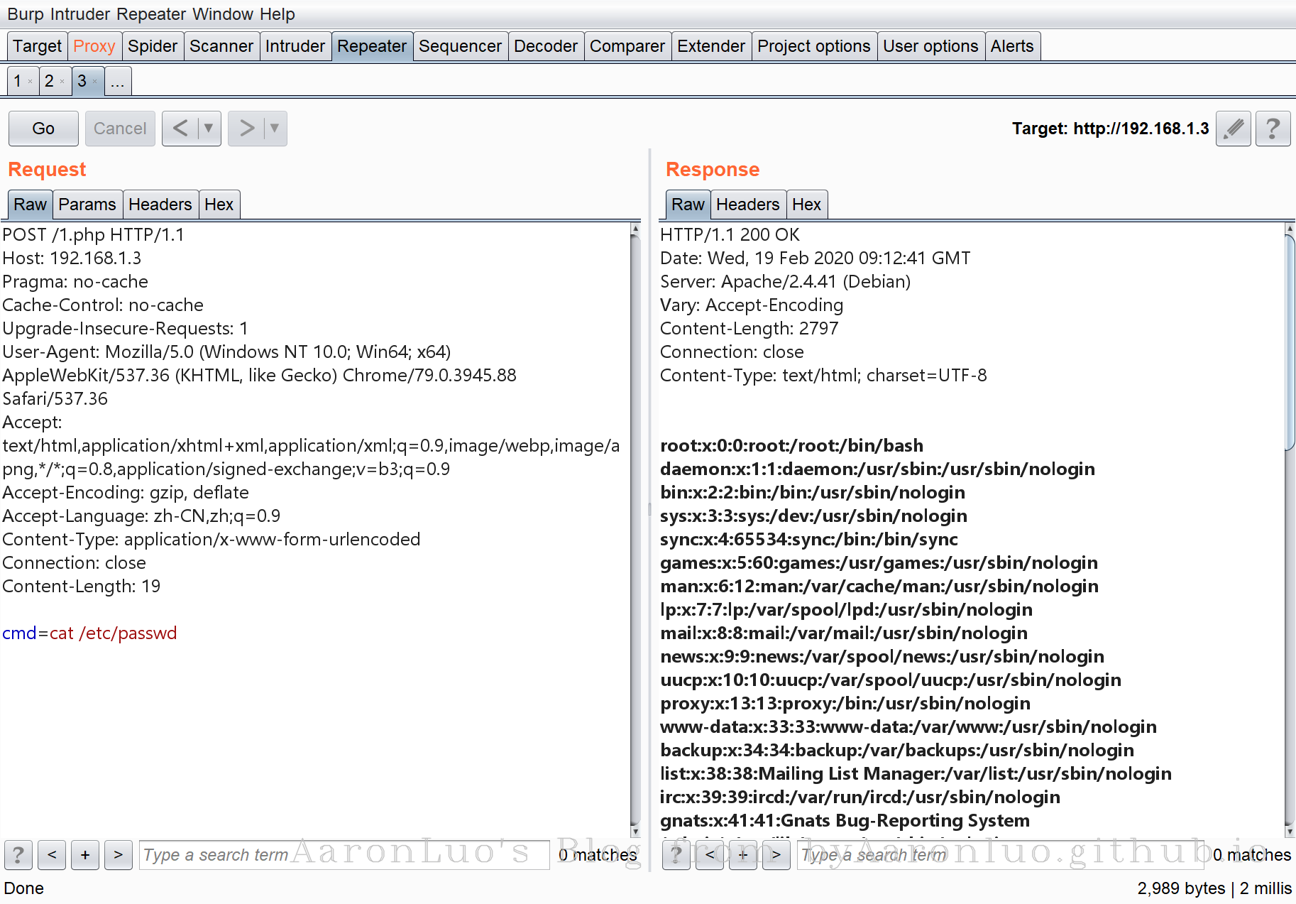 string system ( string $command [, int &$return_var ] ); # $command为执行的命令,&return_var可选,用来存放命令执行后的状态码 # system 函数执行有回显,可将结果显示在页面上 <?php system("whoami"); ?>passthru()