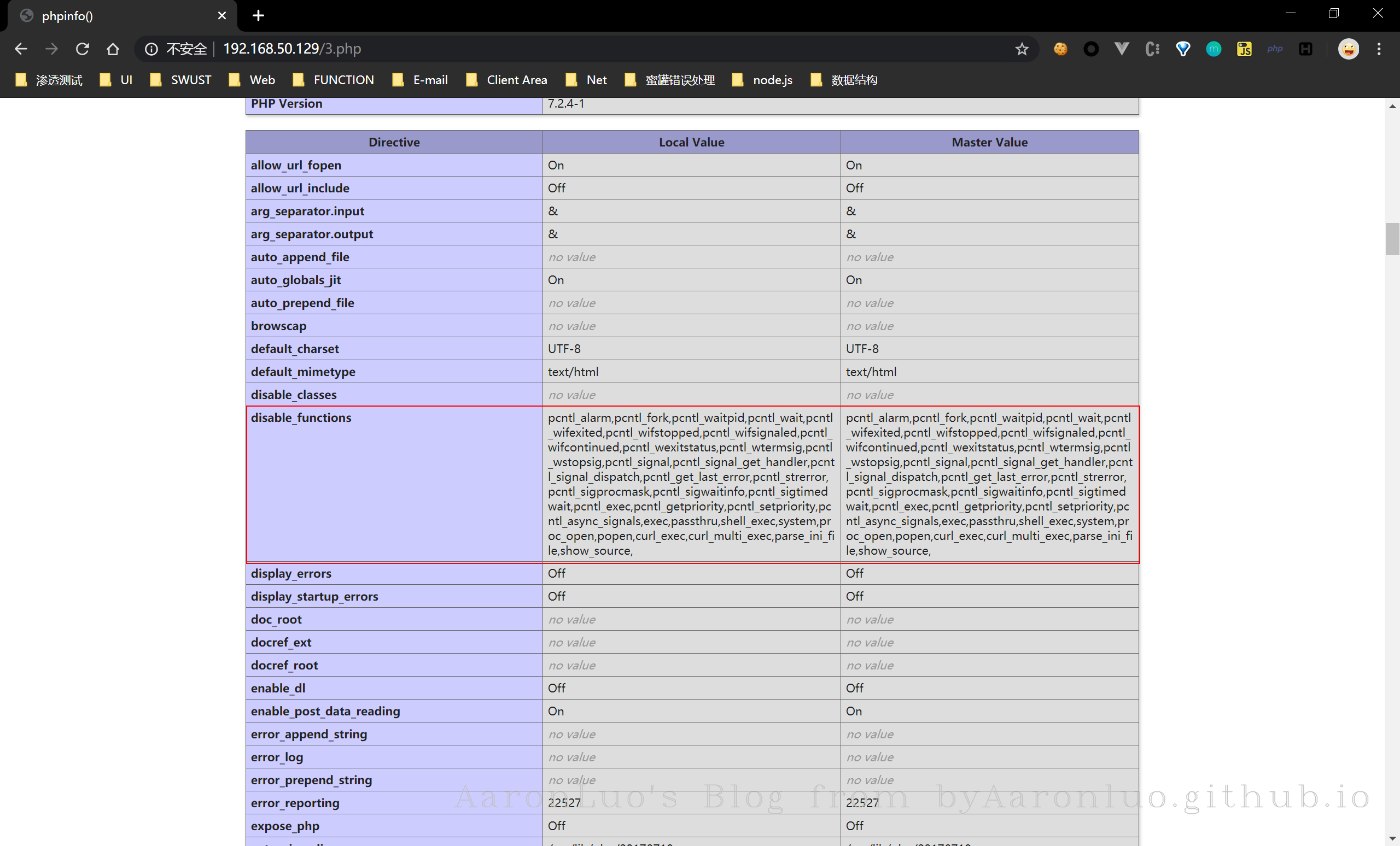 在获取一枚webshell的时候,尝试命令执行,却发现无法执行命令,那么就是php.ini中设置了disable_functions