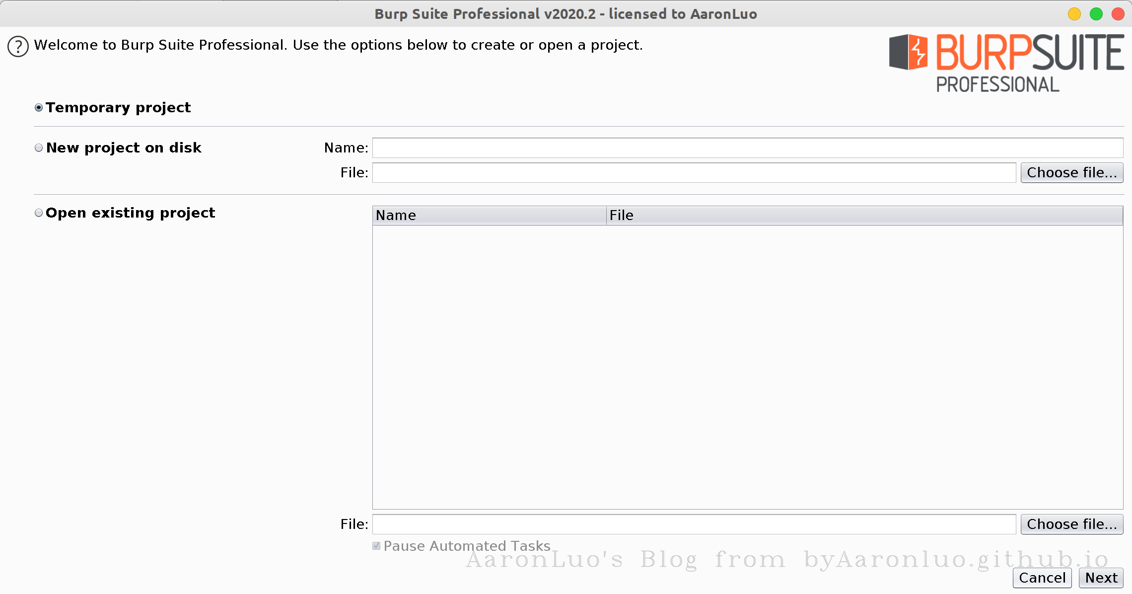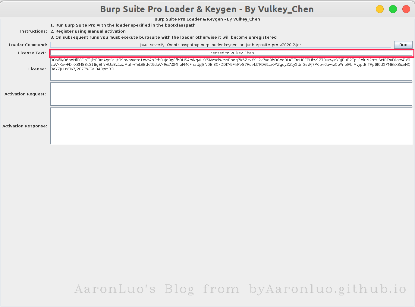 其中License Text可以修改为License to <Your name>,只有这样才能点击run按钮启动burpsuite_pro_v2020.2.jar