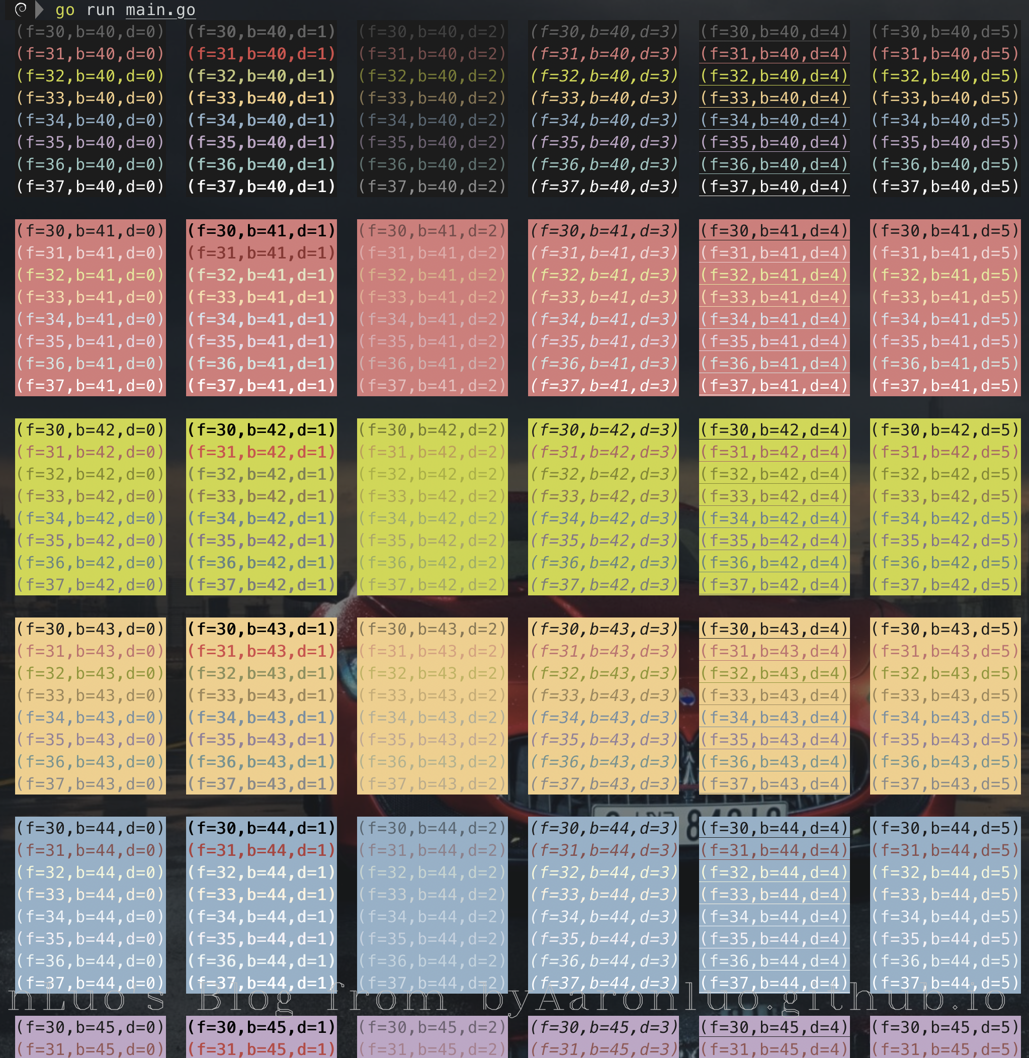 for b := 40; b <= 47; b++ { // 背景色彩 = 40-47