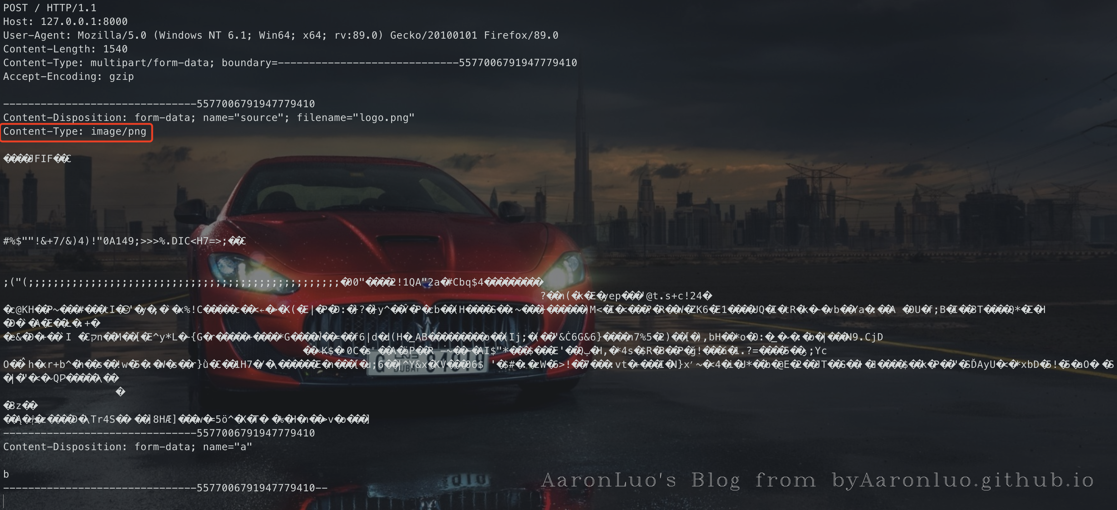 上面的数据包大概是没什么问题,但是图片的Content-Typeapplication/octet-stream,而一般情况下图片的应该是形如image/png 分析了一下原因,是因为CreateFormFile函数里面硬编码了