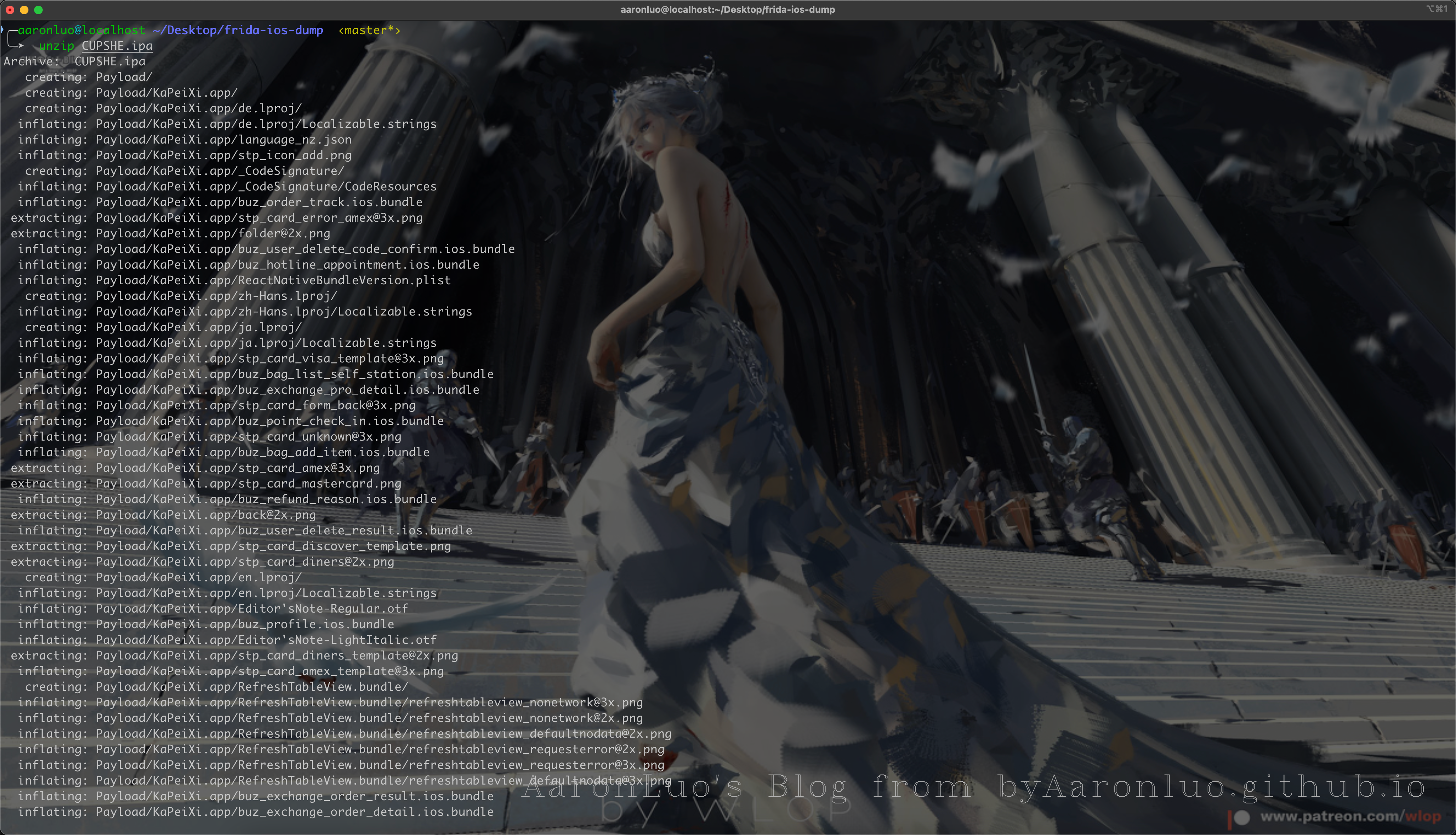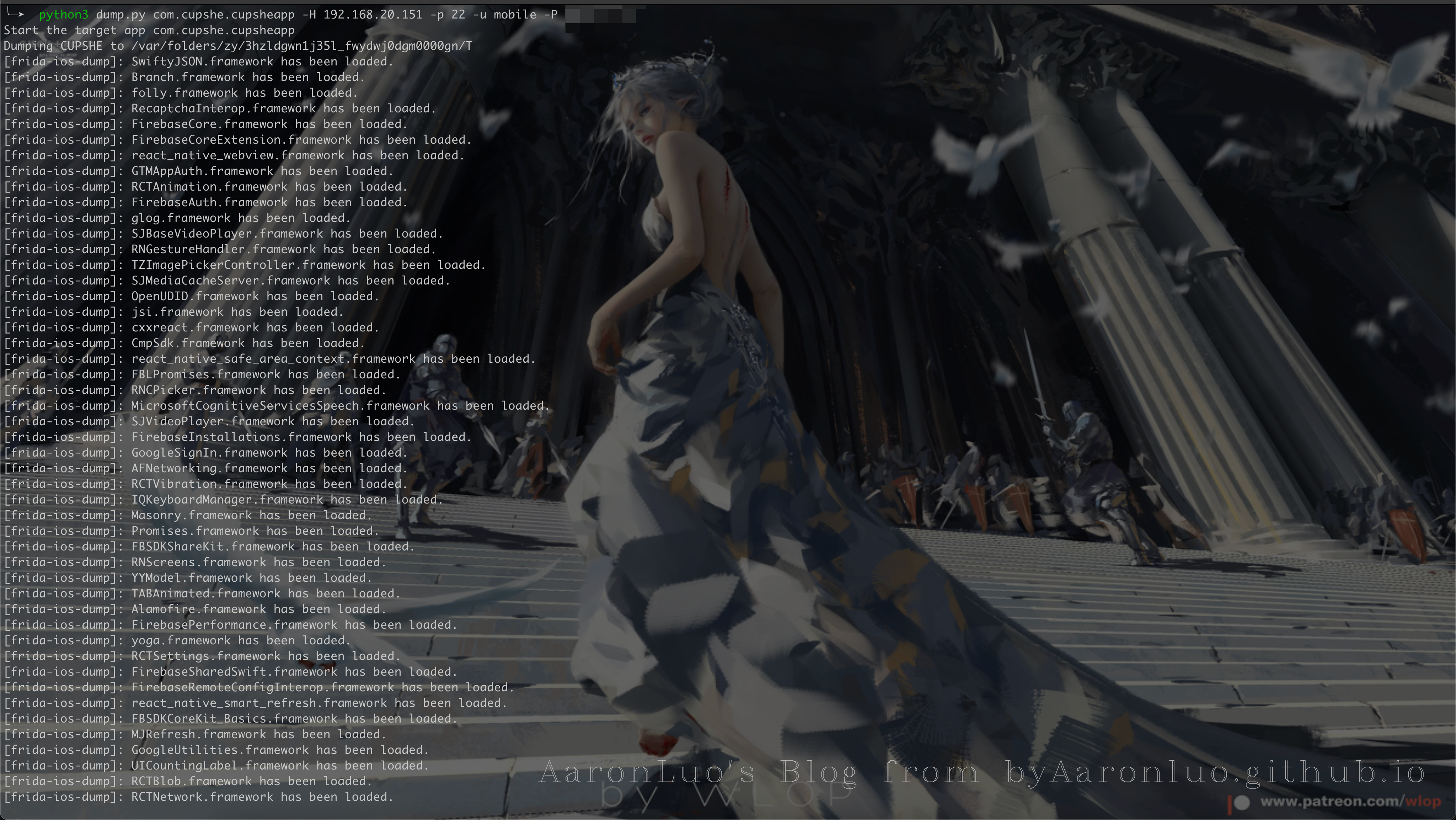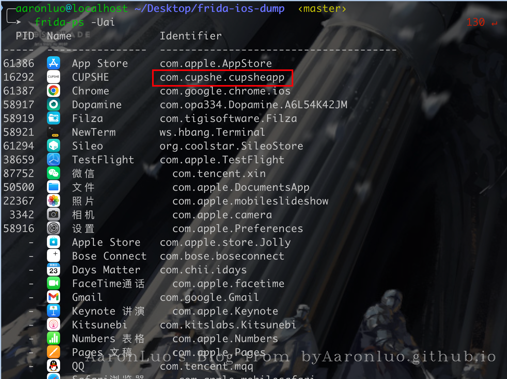 使用frida-ios-dump脱壳,由于APP上线之后苹果会给二进制文件进行加壳操作,如果使用Filza File Manager打包ZIP之后,修改为ipa的后缀,再篡改内容,重新打包就无法完成验证,所以在导出的时候就需要使用脱壳,然后对配置文件等进行修改,再打包