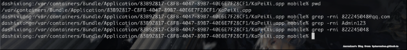 然后再进入到该app中,使用grep快速搜索敏感信息